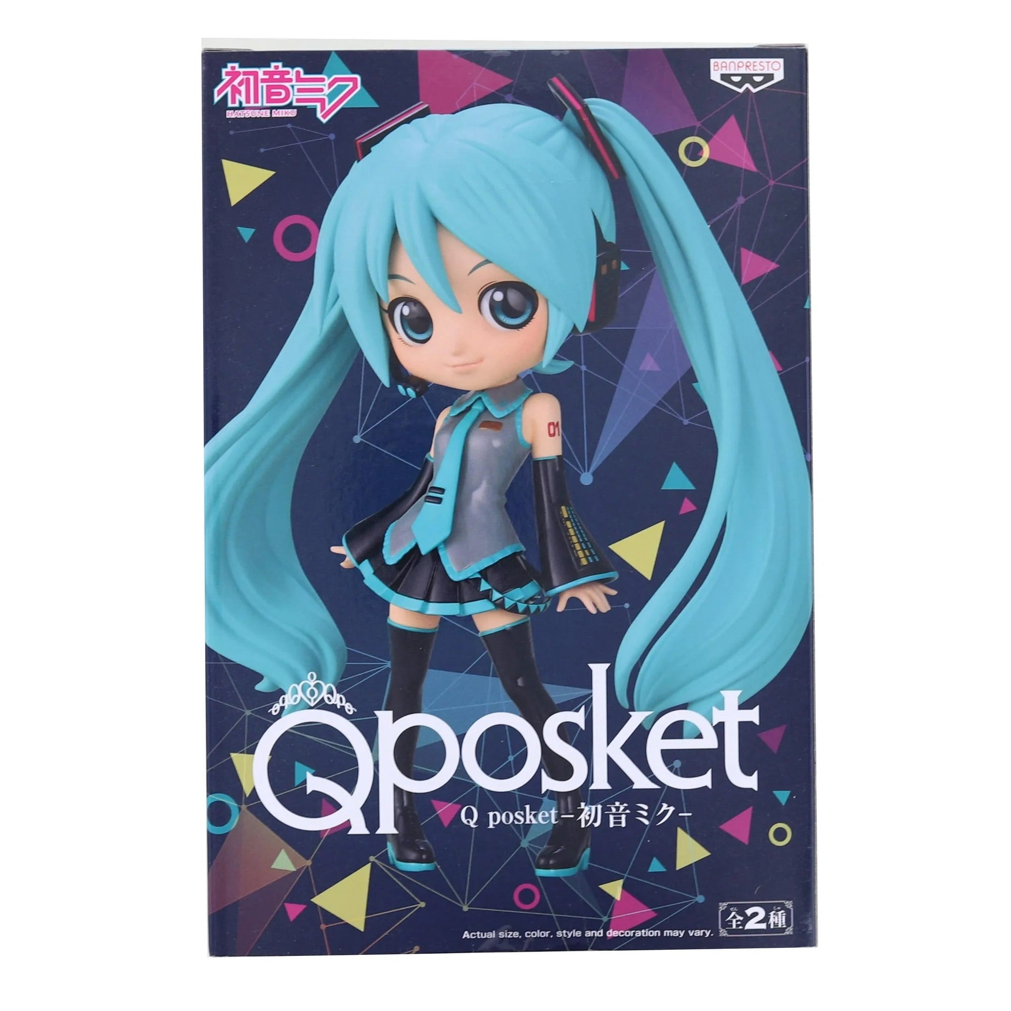 Bring home the world’s most iconic virtual idol with this beautifully styled Q Posket Version A figure of Hatsune Miku. Inspired by the global Vocaloid sensation Hatsune Miku, this collectible showcases her signature turquoise twin-tails, expressive eyes, and stage-ready outfit in Q Posket’s signature big-eyed, chibi-inspired design.
